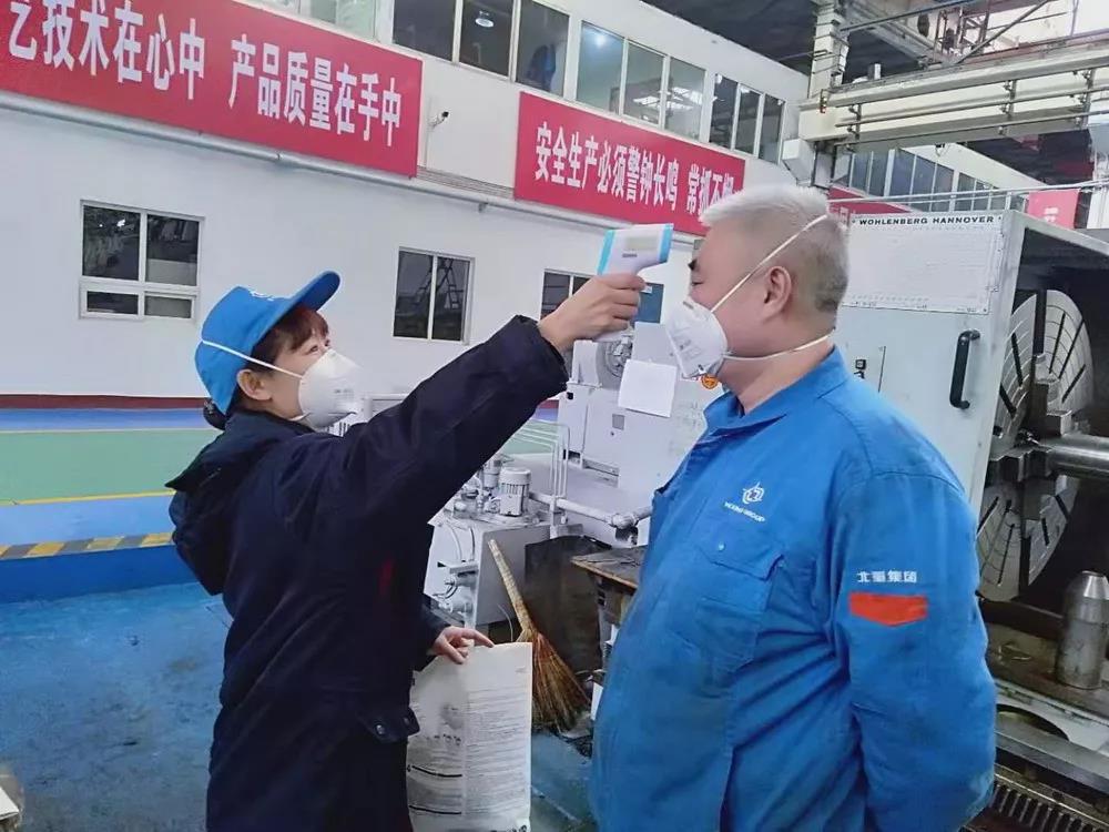 北重集團為在崗工作人員準備了洗手液、口罩、噴壺等消毒防護器材,對進入廠房人員嚴格登記和測量體溫,對工作人員一日四次檢測體溫并進行記錄,在做好疫情防控的同時保證生產。