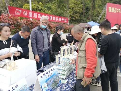 第一步便是養(yǎng)殖江漢綠殼雞,販賣綠殼土雞蛋?!傲窒伦匀环硼B(yǎng),生態(tài)自由采食,原生態(tài)富硒綠殼土雞蛋,1.5元/個(gè),走過(guò)的路過(guò)的不要錯(cuò)過(guò)啊……”這是朱利慶于“保靖縣2020年消費(fèi)扶貧愛(ài)心認(rèn)購(gòu)活動(dòng)”上的推銷廣告詞。2020年4月9日,駐村工作隊(duì)又一次成功地把村集體經(jīng)濟(jì),特色養(yǎng)殖——府庫(kù)綠殼土雞蛋推向了當(dāng)?shù)厥袌?chǎng),此次展銷會(huì)共現(xiàn)場(chǎng)銷售2720個(gè)雞蛋,村集體當(dāng)天收入4080元并與多家單位洽談了長(zhǎng)期意向銷售。工作隊(duì)又購(gòu)進(jìn)8000羽綠殼蛋雞苗,以此進(jìn)一步擴(kuò)大養(yǎng)殖規(guī)格,帶動(dòng)老百姓一起增收。