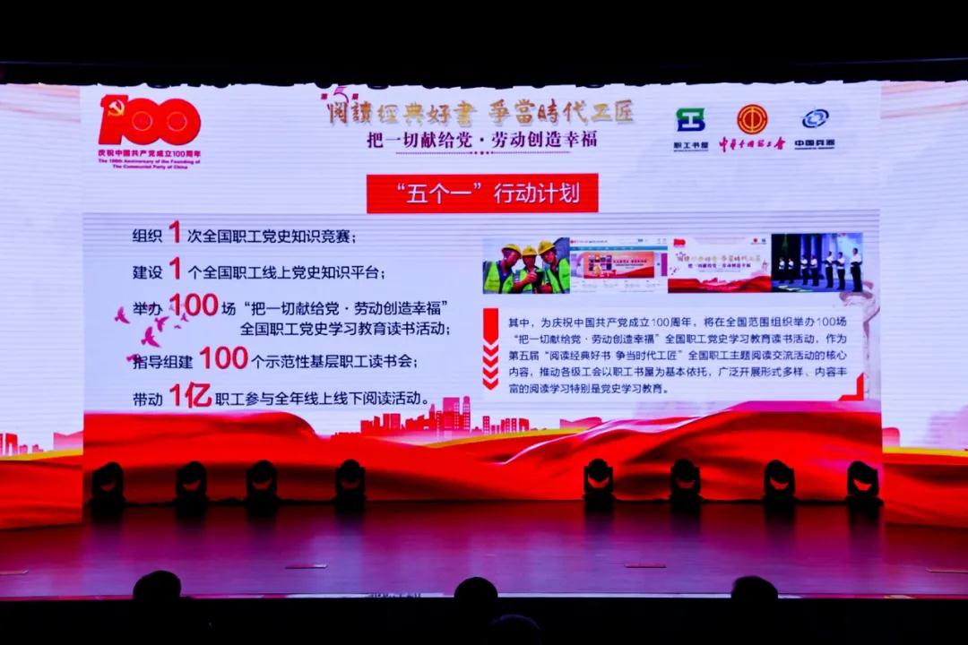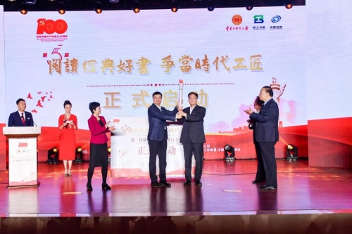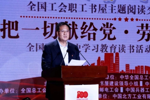4月23日是第26個世界讀書日。在中華全國總工會指導(dǎo)下,全國工會職工書屋建設(shè)領(lǐng)導(dǎo)小組和中國兵器工業(yè)集團(tuán)有限公司共同舉辦了第五屆“閱讀經(jīng)典好書 爭當(dāng)時代工匠”全國工會職工書屋主題閱讀交流活動暨“把一切獻(xiàn)給黨·勞動創(chuàng)造幸?!比珖毠h史學(xué)習(xí)教育讀書活動啟動儀式。中華全國總工會黨組書記、副主席、書記處第一書記陳剛出席活動并講話,中國兵器工業(yè)集團(tuán)有限公司黨組書記、董事長焦開河致辭。陳剛向焦開河傳授活動火炬。全國總工會黨組成員、經(jīng)費審查委員會主任、全國工會職工書屋建設(shè)領(lǐng)導(dǎo)小組組長李曉鐘,全國總工會兼職副主席高鳳林,中國兵器工業(yè)集團(tuán)有限公司黨組副書記周艦出席活動。 陳剛指出,持續(xù)在廣大職工中開展主題閱讀活動,是工會組織貫徹落實習(xí)近平總書記關(guān)于“要提倡多讀書,建設(shè)書香社會,不斷提升人民思想境界、增強(qiáng)人民精神力量”要求的具體行動。今年是中國共產(chǎn)黨成立100周年,黨中央要求在全社會開展黨史、新中國史、改革開放史、社會主義發(fā)展史宣傳教育。深入開展職工主題閱讀活動,并將之與黨史學(xué)習(xí)教育緊密結(jié)合,對于教育廣大職工緊跟共產(chǎn)黨、奮進(jìn)新時代,充分調(diào)動起億萬職工投身全面建設(shè)社會主義現(xiàn)代化國家新征程的熱情,具有十分重要的意義和作用。 陳剛強(qiáng)調(diào),要聚焦思想政治引領(lǐng),深入開展職工閱讀活動,與開展“中國夢·勞動美--永遠(yuǎn)跟黨走 奮進(jìn)新征程”主題教育活動有機(jī)結(jié)合,引導(dǎo)廣大職工堅定不移聽黨話、跟黨走。要把開展職工閱讀活動作為深化產(chǎn)業(yè)工人隊伍建設(shè)改革、提高職工整體素質(zhì)的重要途徑,培養(yǎng)職工良好的閱讀學(xué)習(xí)習(xí)慣,造就更多高素質(zhì)技術(shù)技能人才、能工巧匠、大國工匠。要聚合平臺陣地優(yōu)勢,推動職工書屋與工人文化宮、職工服務(wù)中心等工會服務(wù)場所及網(wǎng)絡(luò)平臺陣地融合發(fā)展,堅持職工為本、貼近基層,突出公益性、服務(wù)性,實現(xiàn)創(chuàng)新升級,不斷激發(fā)活力,打造億萬職工文化家園。要引導(dǎo)職工求知善讀,博學(xué)精進(jìn),勵學(xué)敦行,共同譜寫勞動光榮的華彩樂章,匯聚團(tuán)結(jié)奮進(jìn)的強(qiáng)大正能量。