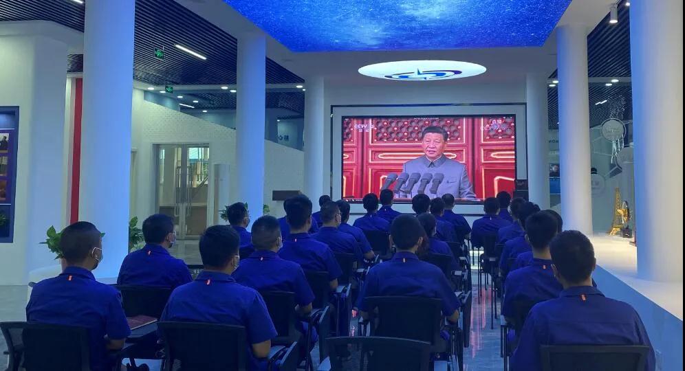 集團公司總經(jīng)理、黨組副書記劉大山,黨組副書記周艦,黨組成員、總會計師張華,紀檢監(jiān)察組組長、黨組成員陳學(xué)釧,黨組成員、副總經(jīng)理鄒文超,黨組成員、副總經(jīng)理植玉林帶領(lǐng)總部全體職工觀看慶祝大會,各單位組織機關(guān)干部、科研人員、車間工人等通過集中收看、電視、電腦、手機網(wǎng)絡(luò)等方式觀看慶祝大會。