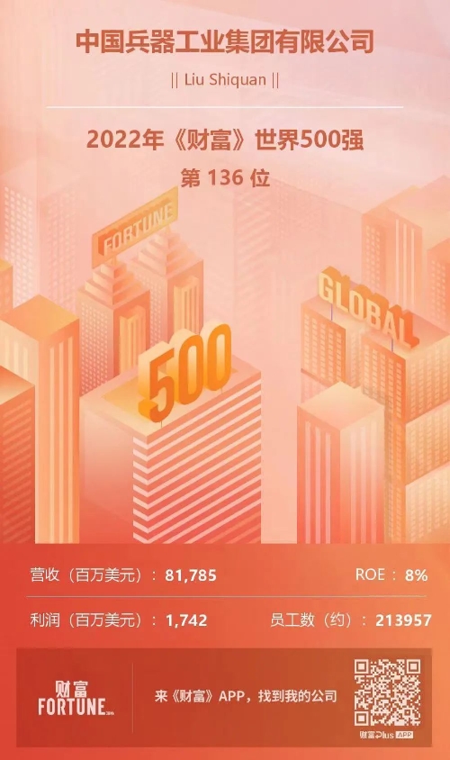 兵器工業(yè)集團位列2022年《財富》世界500強第136位 |